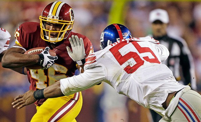 Los New York Giants sufrieron el lunes por la noche en Washington una derrota que pone un manto de duda en su clasificación a los playoffs y en la posibilidad de que puedan repetir el título de la temporada pasada: perdieron 17-16 ante los Redskins y ahora tiene apenas un partido de ventaja en la División Este de la NFC sobre los mismos «Pieles Rojas» y los Dallas Cowboys, cuando todavía quedan cuatro fechas por disputar. Esta fue la tercera derrota para los «Gigantes» en los últimos cinco partidos.