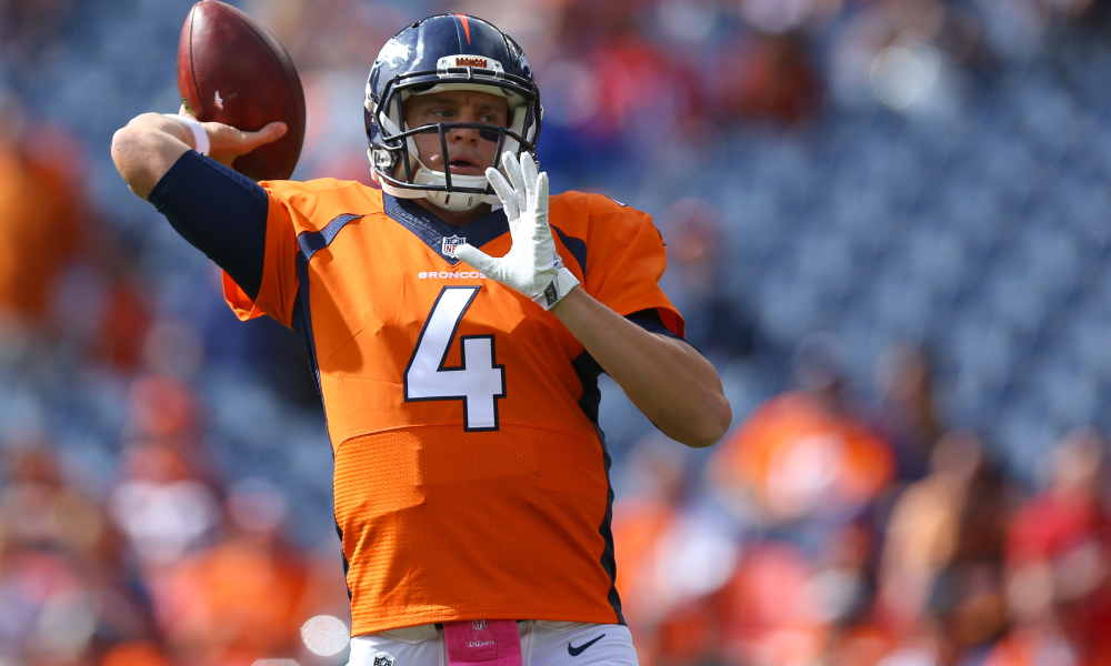 Atlanta Falcons v Denver Broncos Publicado el 7 septiembre, 2018 en 1000 × 600 en Equipo por equipo: los 32 mariscales titulares a la hora del debut Imagen anterior Próxima imagen DENVER, CO – OCTOBER 9: Denver Broncos quarterback Austin Davis #4 warms up before the game against the Atlanta Falcons at Sports Authority Field at Mile High on October 9, 2016 in Denver, Colorado. (Photo by Justin Edmonds/Getty Images)